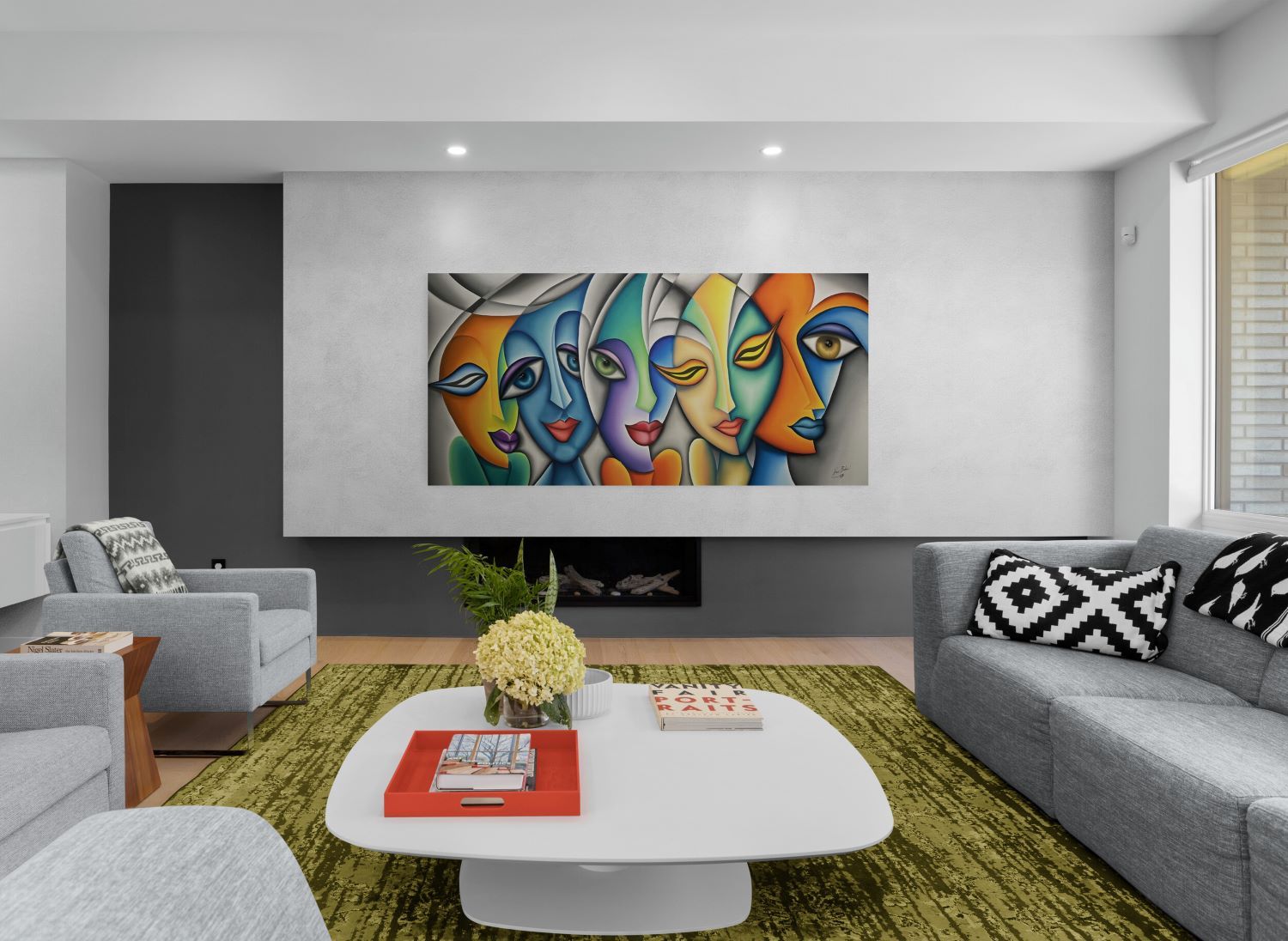 L’artista dipinge volti di persone che si susseguono in un senso armonico, Con i loro occhi grandi sono uniti tra loro come il valore dell'amicizia simbolo di quest'opera.